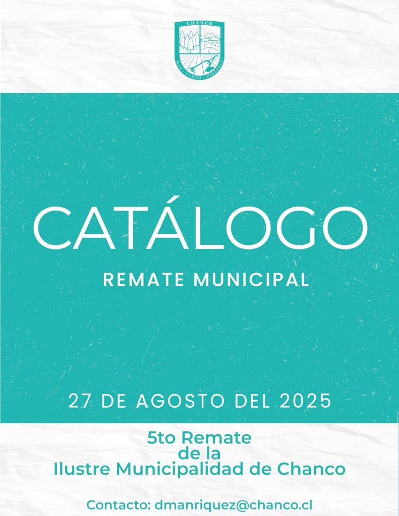 La Ilustre Municipalidad de Chanco te invita a participar en un remate público de diversos artículos. 📅 Detalles del evento 🔎 Exhibición de artículos Antes del remate, podrás conocer los artículos disponibles de dos formas:✅ Presencial: Martes 26 de agosto, entre 09:30 y 13:00 hrs.✅ Catálogo digital: Disponible en https://chanco.cl ℹ️ Más información Para cualquier […]