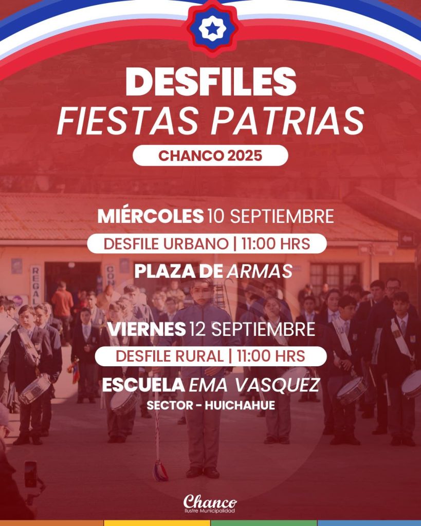 Con el inicio de septiembre a la vista, la comuna de Chanco ya prepara las actividades que marcarán la conmemoración de las Fiestas Patrias 2025. Entre ellas, destacan dos desfiles que reunirán a la comunidad escolar, organizaciones sociales y autoridades locales en torno a la identidad nacional. El miércoles 10 de septiembre, a las 11:00 […]
