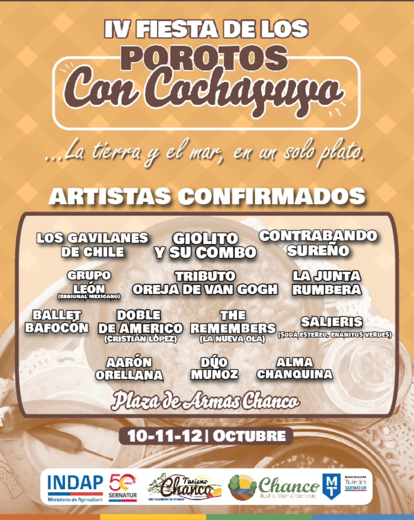 Entre el 10 y el 12 de octubre, la Plaza de Armas de Chanco se transformará en el epicentro cultural y gastronómico del Maule con la realización de la IV Fiesta de los Porotos con Cochayuyo, evento que busca consolidarse como un referente regional al unir en un solo espacio tradición, música y emprendimiento local.